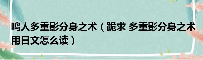 鸣人多重影分身之术(跪求 多重影分身之术用日文怎么读)