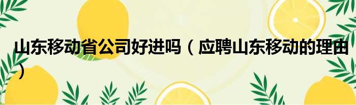 导读 大家好,今天小六子来为大家解答以下的问题,关于山东移动省公司好进吗,应聘山东移动的理由这个很多人还不知道,现在让我们一起来看看吧!1