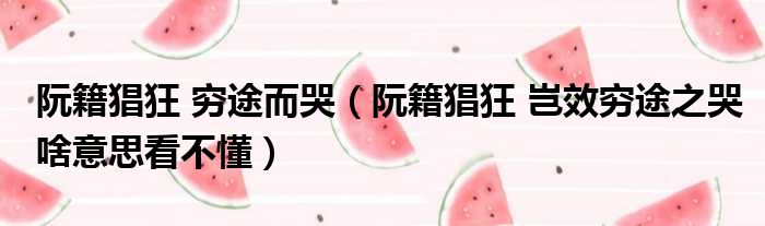阮籍猖狂 穷途而哭(阮籍猖狂 岂效穷途之哭啥意思看不懂)