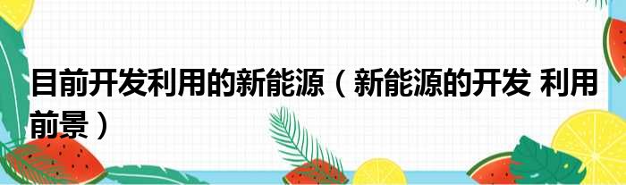 目前开发利用的新能源(新能源的开发 利用 前景)