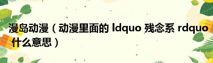 导读 大家好,今天小六子来为大家解答以下的问题,关于漫岛动漫,动漫里面的 ldquo 残念系 rdquo 什么意思这个很多人还不知道,现在让我们一