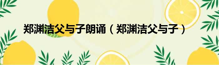 大家好,今天小六子来为大家解答以下的问题,关于郑渊洁父与子朗诵,郑渊洁父与子这个很多人还不知道,现在让我们一起来看看吧!