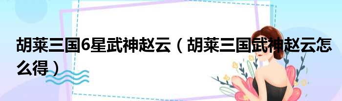 胡莱三国6星武神赵云(胡莱三国武神赵云怎么得)
