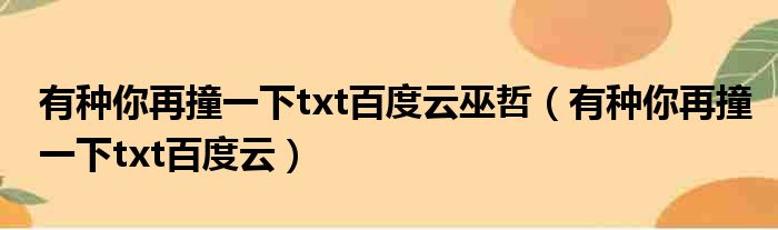 导读 大家好,今天小六子来为大家解答以下的问题,关于有种你再撞一下txt百度云巫哲,有种你再撞一下txt百度云这个很多人还不知道,现在让我们一