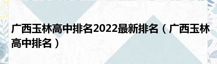 广西玉林高中排名2022最新排名(广西玉林高中排名)