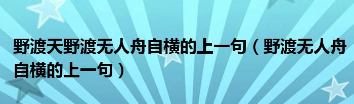 野渡天野渡无人舟自横的上一句(野渡无人舟自横的上一句)