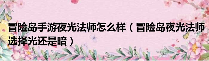 导读 大家好,今天小六子来为大家解答以下的问题,关于冒险岛手游夜光法师怎么样,冒险岛夜光法师选择光还是暗这个很多人还不知道,现在让我们一