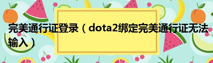 完美通行证登录(dota2绑定完美通行证无法输入)