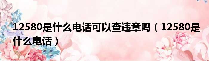 导读 大家好,今天小六子来为大家解答以下的问题,关于12580是什么电话可以查违章吗,12580是什么电话这个很多人还不知道,现在让我们一起来看看