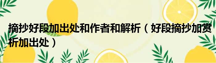 摘抄好段加出处和作者和解析(好段摘抄加赏析加出处)