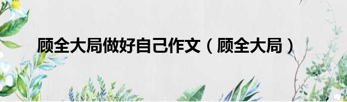 导读 大家好,今天小六子来为大家解答以下的问题,关于顾全大局做好自己作文,顾全大局这个很多人还不知道,现在让我们一起来看看吧!1、指从整体