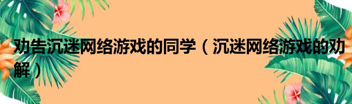 劝告沉迷网络游戏的同学(沉迷网络游戏的劝解)