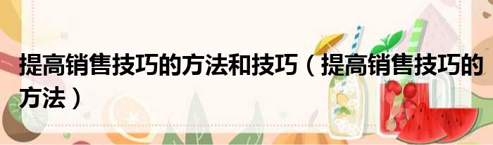 提高销售技巧的方法和技巧(提高销售技巧的方法)