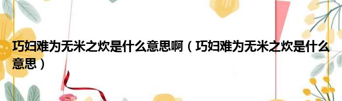 巧妇难为无米之炊是什么意思啊(巧妇难为无米之炊是什么意思)