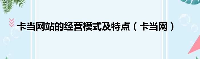 大家好,今天小六子来为大家解答以下的问题,关于卡当网站的经营模式及特点,卡当网这个很多人还不知道,现在让我们一起来看看吧!