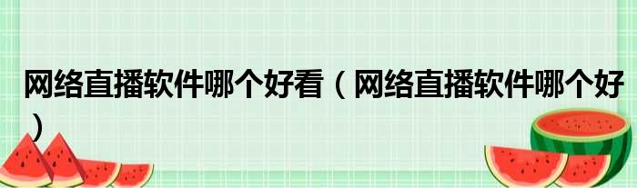 网络直播软件哪个好看(网络直播软件哪个好)