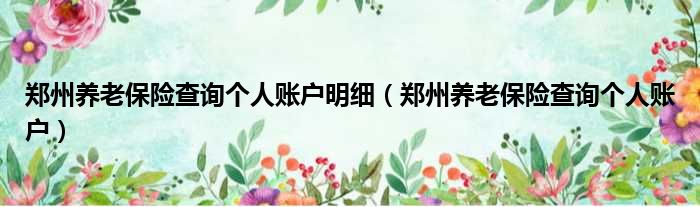 郑州养老保险查询个人账户明细(郑州养老保险查询个人账户)
