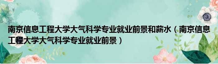南京信息工程大学大气科学专业就业前景和薪水(南京信息工程大学大气科学专业就业前景)