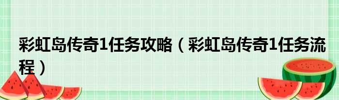 彩虹岛传奇1任务攻略(彩虹岛传奇1任务流程)