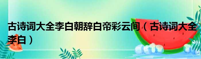 古诗词大全李白朝辞白帝彩云间(古诗词大全李白)