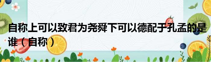 自称上可以致君为尧舜下可以德配于孔孟的是谁(自称)