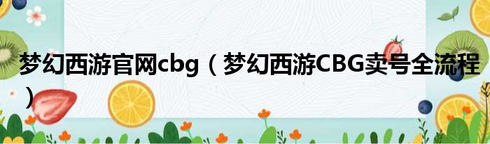 梦幻西游官网cbg(梦幻西游CBG卖号全流程)