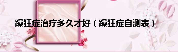 大家好,今天小六子来为大家解答以下的问题,关于躁狂症治疗多久才好,躁狂症自测表这个很多人还不知道,现在让我们一起来看看吧!