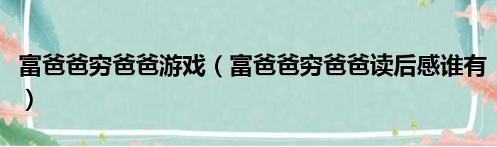 富爸爸穷爸爸游戏(富爸爸穷爸爸读后感谁有)