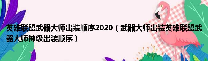 导读 大家好,今天小六子来为大家解答以下的问题,关于英雄联盟武器大师出装顺序2020,武器大师出装英雄联盟武器大师神级出装顺序这个很多人还不