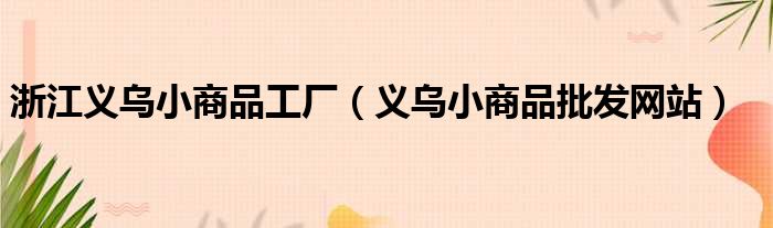 浙江义乌小商品工厂(义乌小商品批发网站)