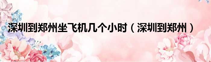 深圳到郑州坐飞机几个小时(深圳到郑州)