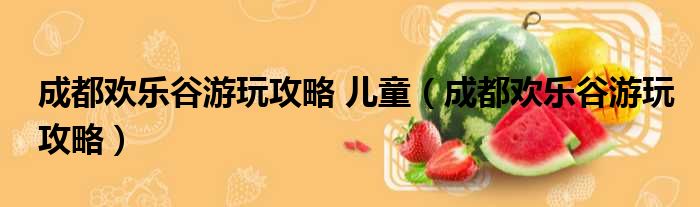 成都欢乐谷游玩攻略 儿童(成都欢乐谷游玩攻略)