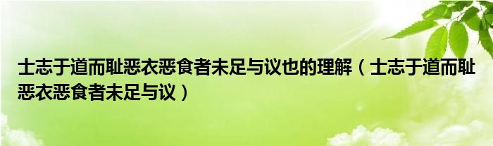 士志于道而耻恶衣恶食者未足与议也的理解(士志于道而耻恶衣恶食者未足与议)