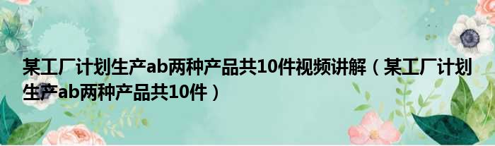 某工厂计划生产ab两种产品共10件视频讲解(某工厂计划生产ab两种产品共10件)