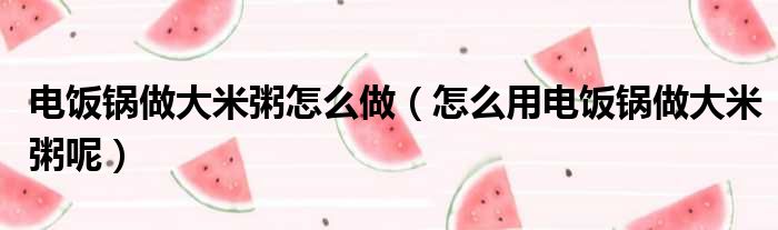 电饭锅做大米粥怎么做(怎么用电饭锅做大米粥呢)