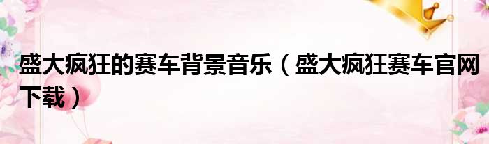 导读 大家好,今天小六子来为大家解答以下的问题,关于盛大疯狂的赛车背景音乐,盛大疯狂赛车官网下载这个很多人还不知道,现在让我们一起来看看