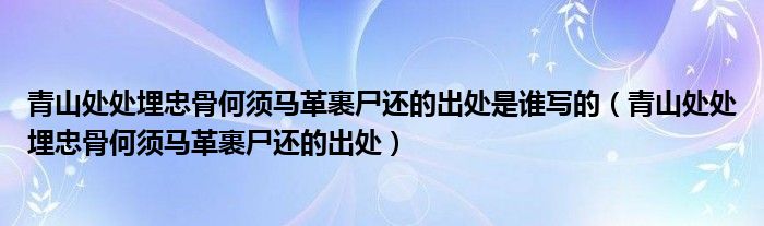 青山处处埋忠骨何须马革裹尸还的出处是谁写的(青山处处埋忠骨何须马革裹尸还的出处)