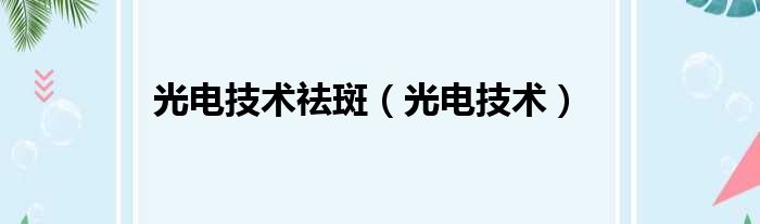 导读 大家好,今天小六子来为大家解答以下的问题,关于光电技术祛斑,光电技术这个很多人还不知道,现在让我们一起来看看吧!1、简介 信息显示与