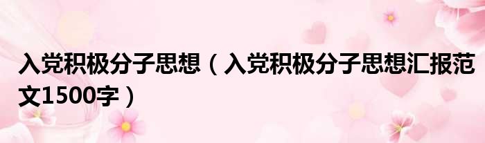 入党积极分子思想(入党积极分子思想汇报范文1500字)