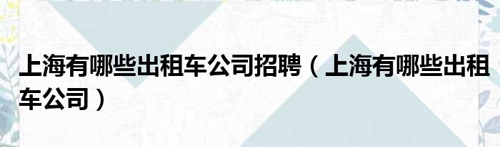 上海有哪些出租车公司招聘(上海有哪些出租车公司)