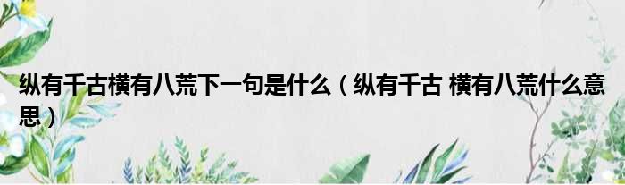 导读 大家好,今天小六子来为大家解答以下的问题,关于纵有千古横有八荒下一句是什么,纵有千古 横有八荒什么意思这个很多人还不知道,现在让我