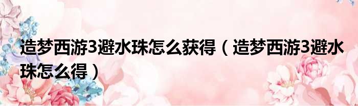 造梦西游3避水珠怎么获得(造梦西游3避水珠怎么得)