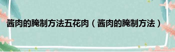 酱肉的腌制方法五花肉(酱肉的腌制方法)