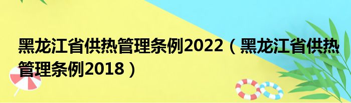 导读 大家好,今天小六子来为大家解答以下的问题,关于黑龙江省供热管理条例2022,黑龙江省供热管理条例2018这个很多人还不知道,现在让我们一起