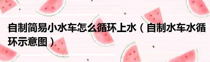 导读 大家好,今天小六子来为大家解答以下的问题,关于自制简易小水车怎么循环上水,自制水车水循环示意图这个很多人还不知道,现在让我们一起来