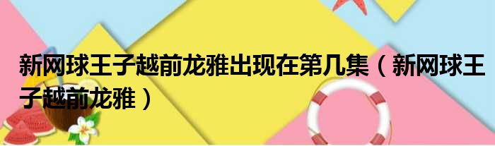 导读 大家好,今天小六子来为大家解答以下的问题,关于新网球王子越前龙雅出现在第几集,新网球王子越前龙雅这个很多人还不知道,现在让我们一起