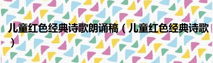 儿童红色经典诗歌朗诵稿(儿童红色经典诗歌)