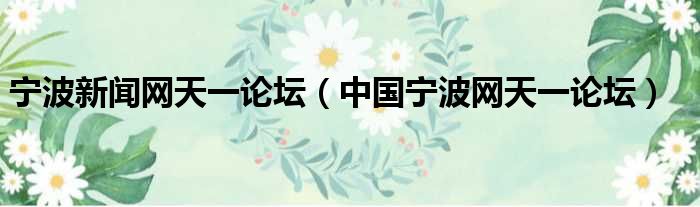 宁波新闻网天一论坛(中国宁波网天一论坛)