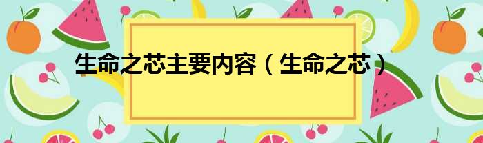 大家好,今天小六子来为大家解答以下的问题,关于生命之芯主要内容,生命之芯这个很多人还不知道,现在让我们一起来看看吧!