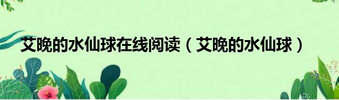 导读 大家好,今天小六子来为大家解答以下的问题,关于艾晚的水仙球在线阅读,艾晚的水仙球这个很多人还不知道,现在让我们一起来看看吧!1、艾晚